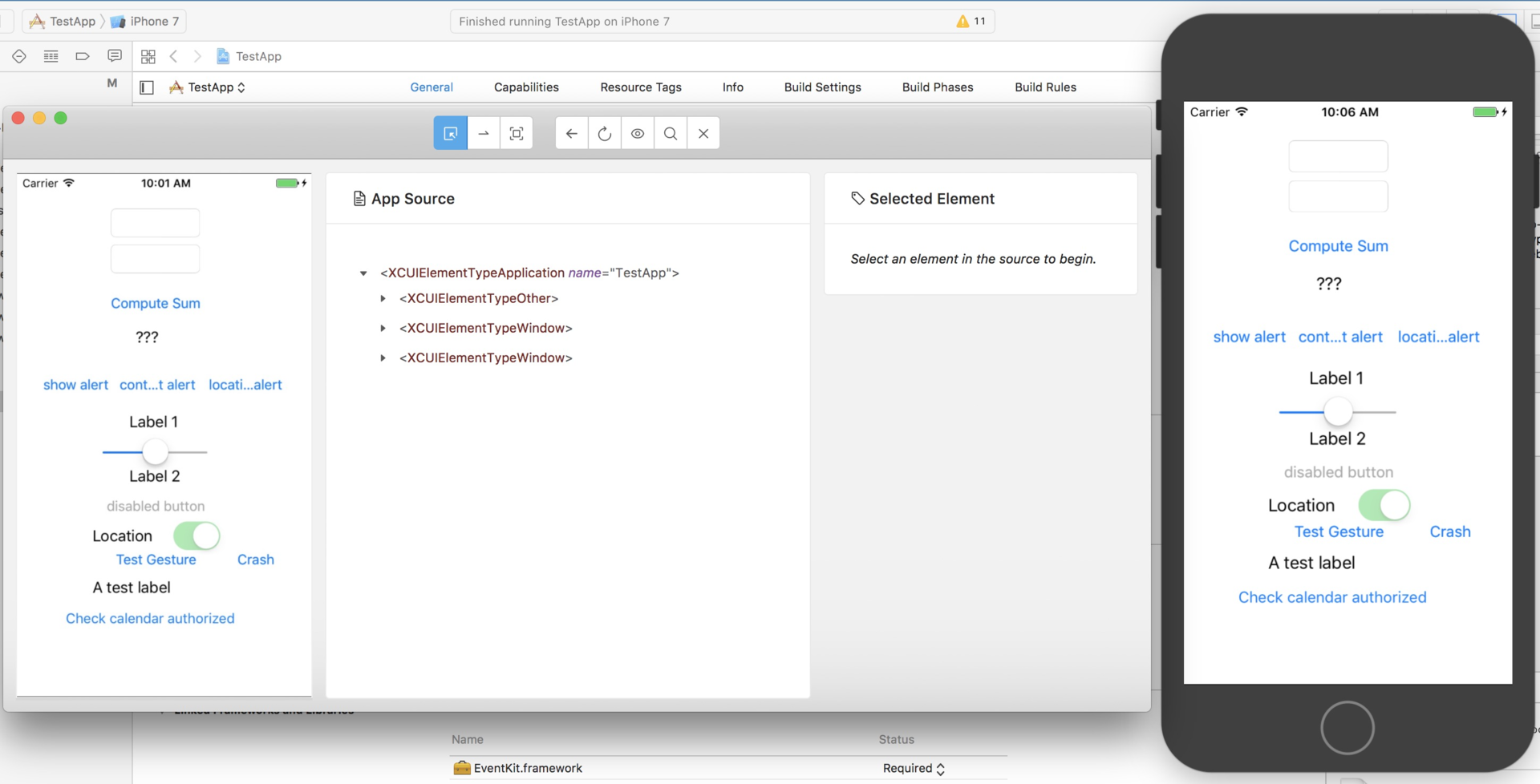 Native App的测试用例,被测App我选用了Appium官方的示例App,被测App的源代码可以通过“https://github.com/appium/ios-test-app” 下载,然后在Xcode中编译打包成TestApp.app。- 具体的测试需求是输入两个数字,然后点击“Compute Sum”验证两个数字相加后的结果是否正确。