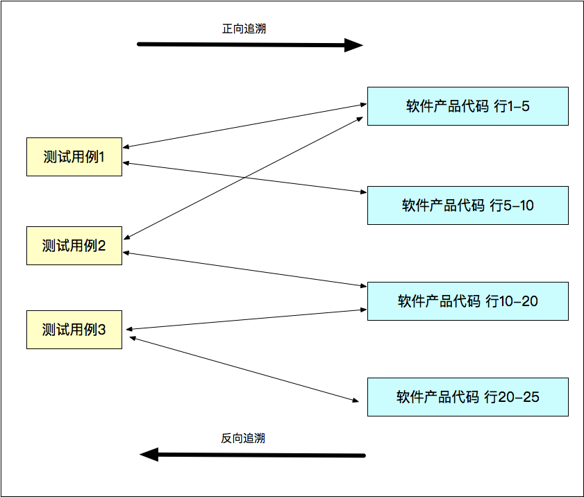 这里,测试用例和被测代码的双向追溯,包括正向追溯和反向追溯。
