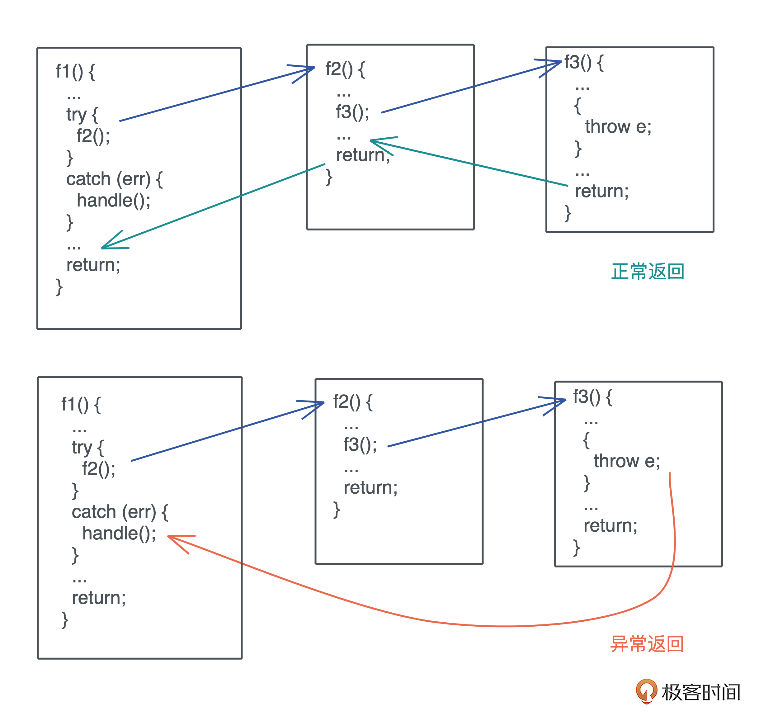因为返回值不利于错误的传播,有诸多限制,Java 等很多语言使用异常来处理错误。