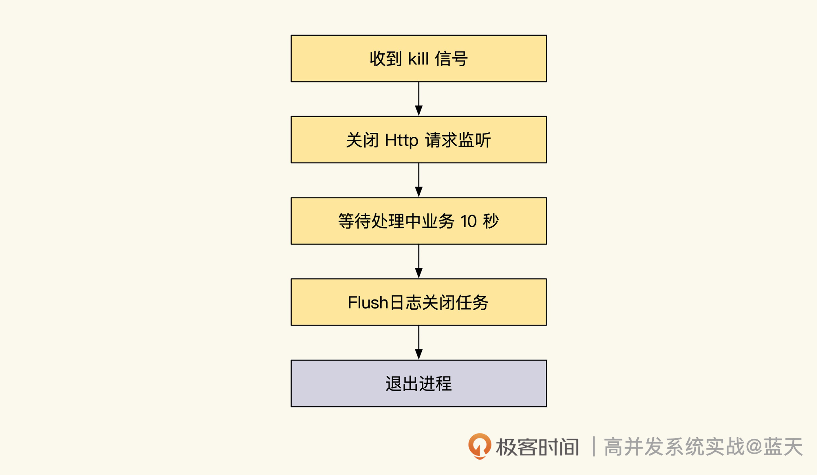 在我们的服务升级时,可以不让服务进程收到kill信号后直接退出,而是制作平滑重启功能,即先让服务停止接收新的请求,等待之前的请求处理完成,如果等待超过10秒则直接退出。
