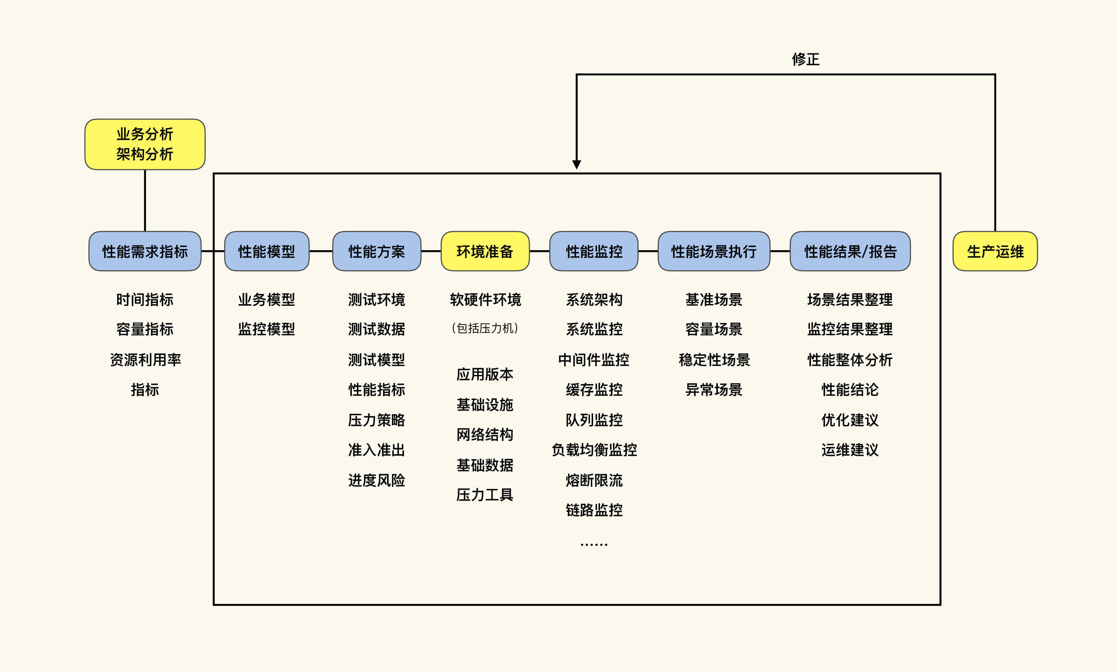 2. 解决单接口基准场景中遇到的性能问题:也就是说,当我们在做单接口测试时,碰到了性能瓶颈一定要分析,这就涉及到了性能分析逻辑。所以,性能分析基本上可以分为两大阶段: